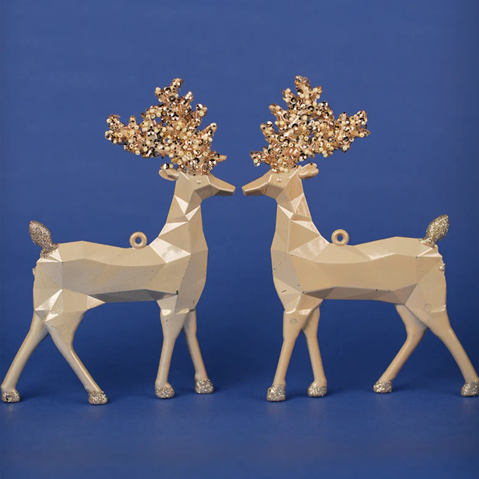 Light up your holiday decor with our premium champagne Christmas reindeers! This unique set of 2 reindeer features a festive and whimsical Christmas frosting and glittering embellishments, adding a touch of fun and cheer to any room. Made with high-quality materials, they are both functional and eye-catching. Bring warmth and personality to your home with our decorative ornaments.