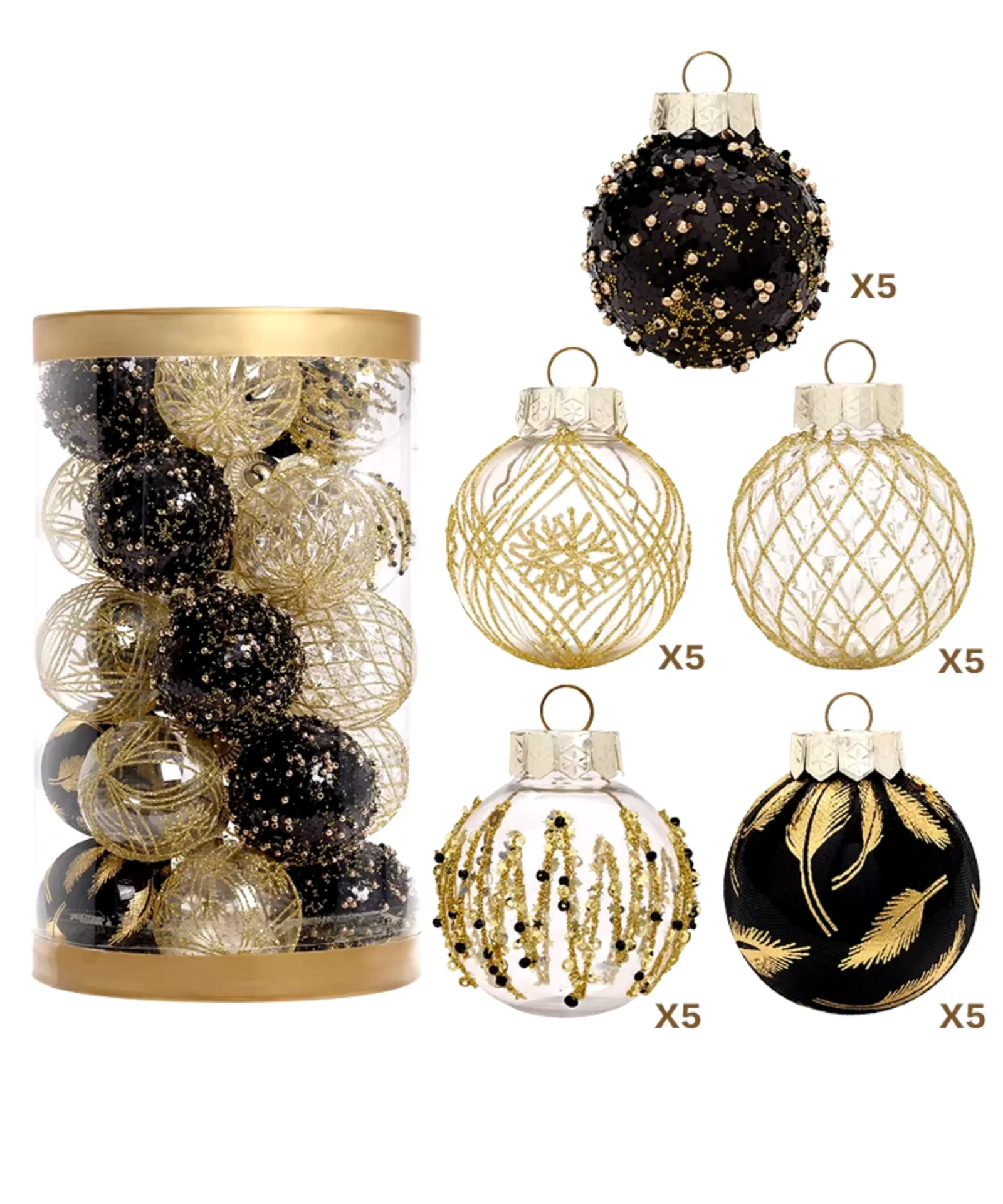 A21 Festive Sparkly and embellished Black/Brown 6cm Baubles, Pack of 25