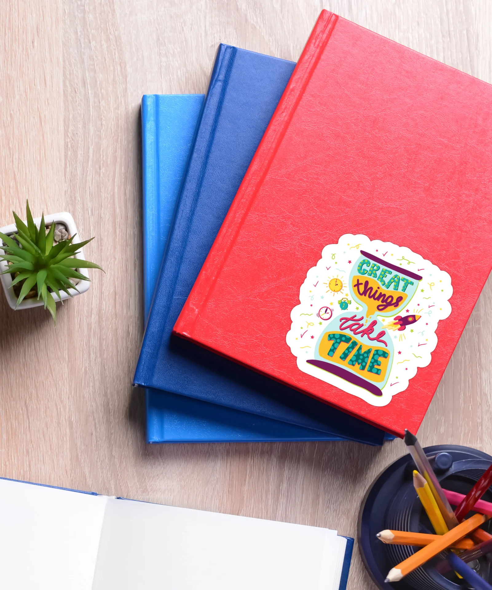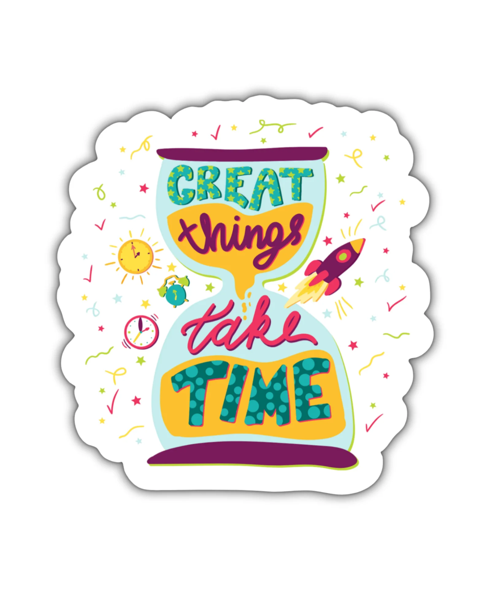 GREAT THINGS TAKE TIME | Cute Aesthetic Sticker, Motivational Sticker, Matt Laminated Vinyl Stickers, Mobile Sticker, Laptop Stickers