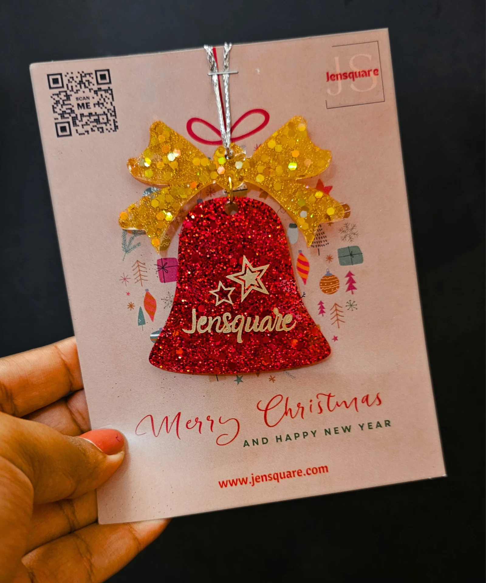 – Golden charm with Christmas verse on one side and personalised text