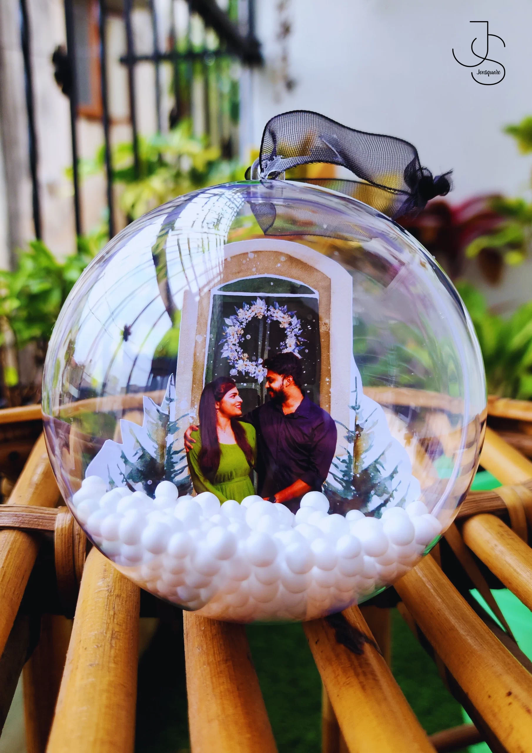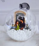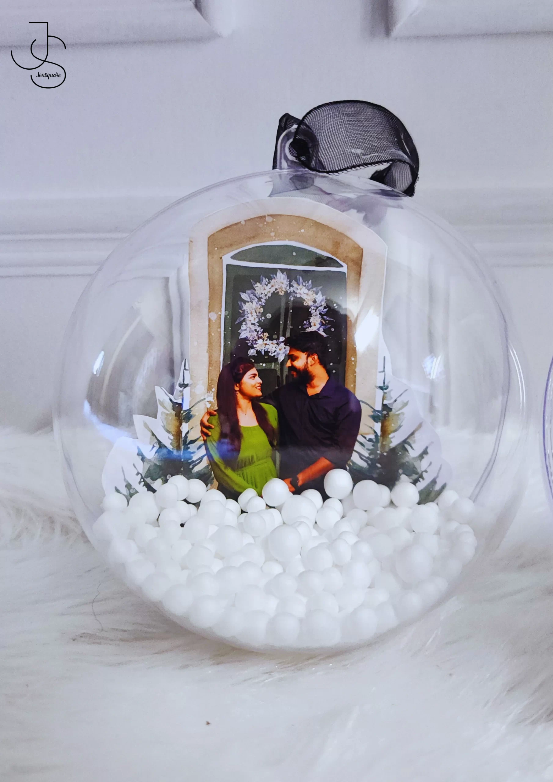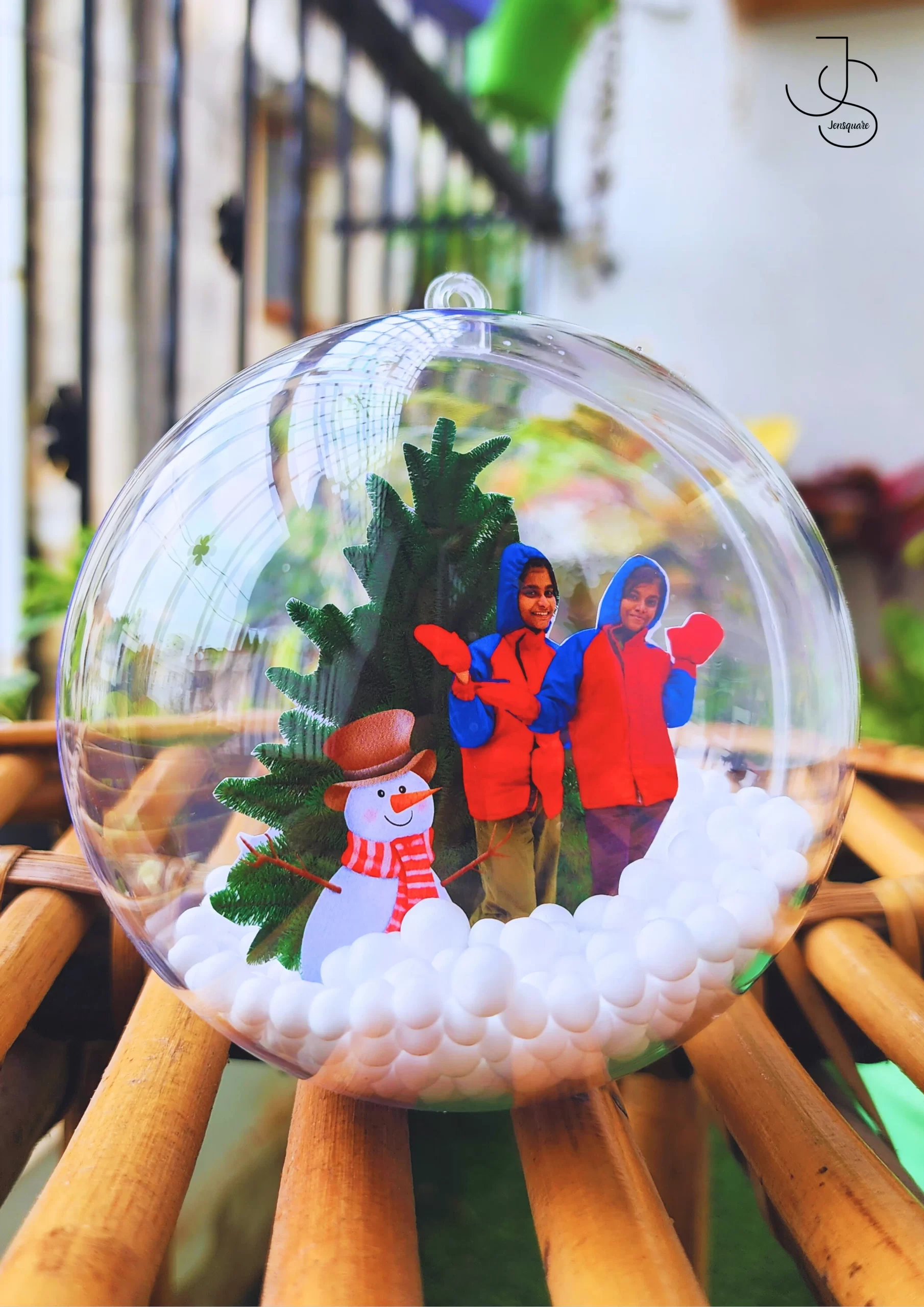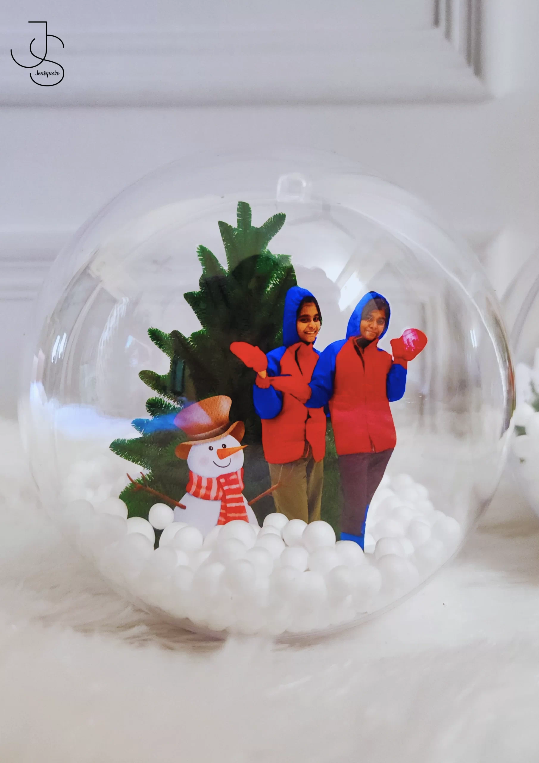 Transparent Baubles with 2D image curated perfectly designed and fixed inside to give a snowy globe effect.