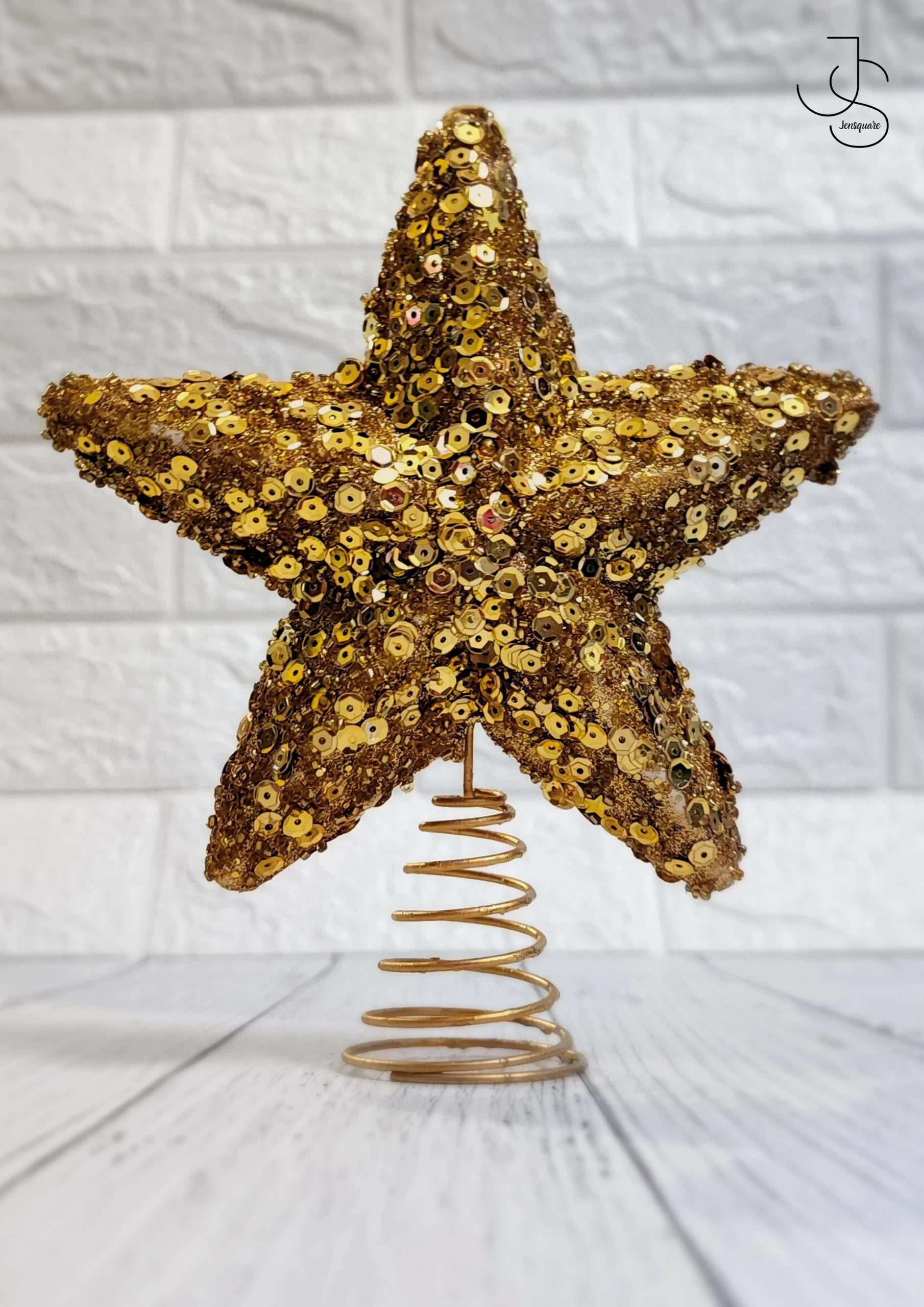 Elevate your tree with our Luxurious Golden Star Christmas Tree Topper with gold sequences.