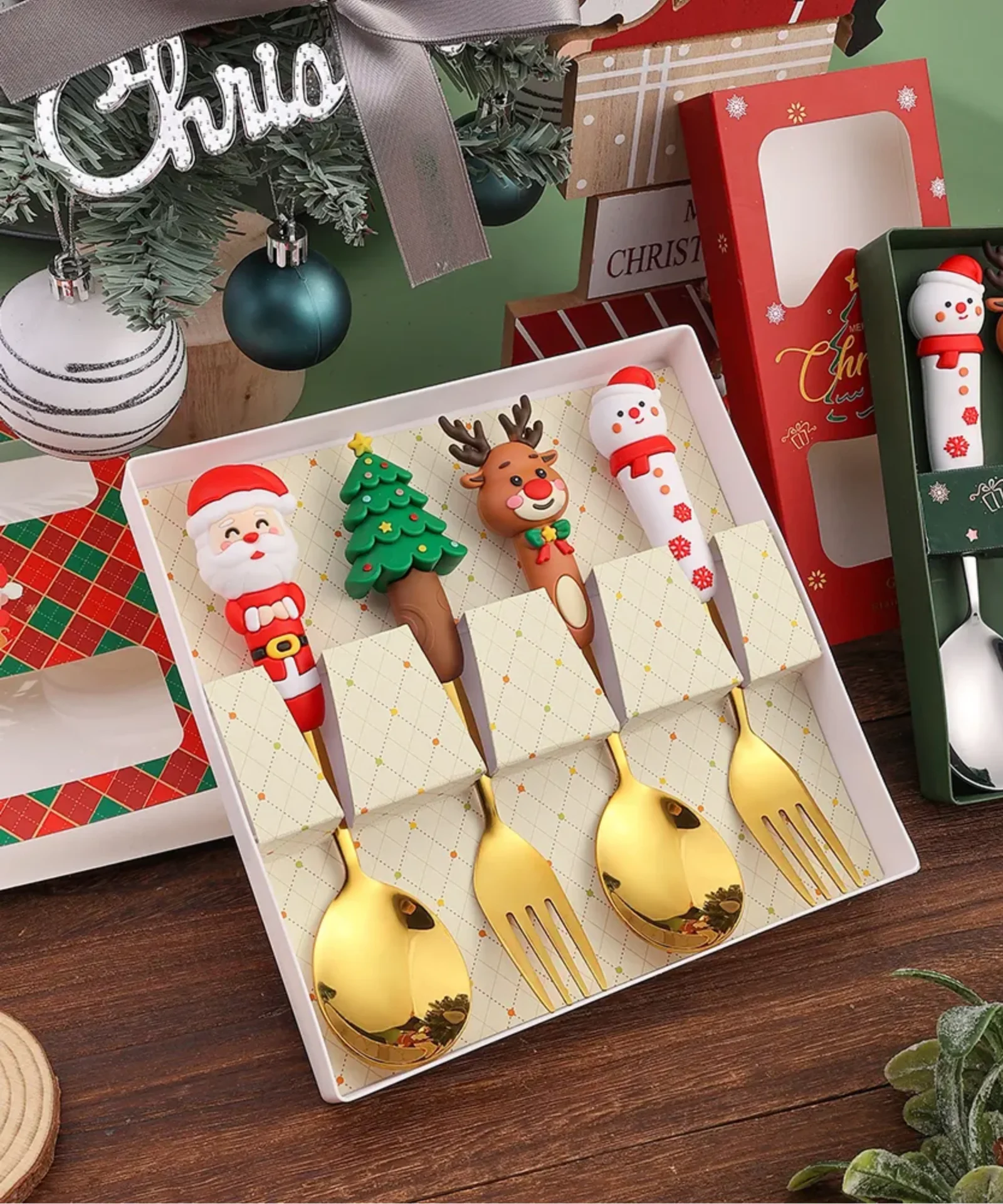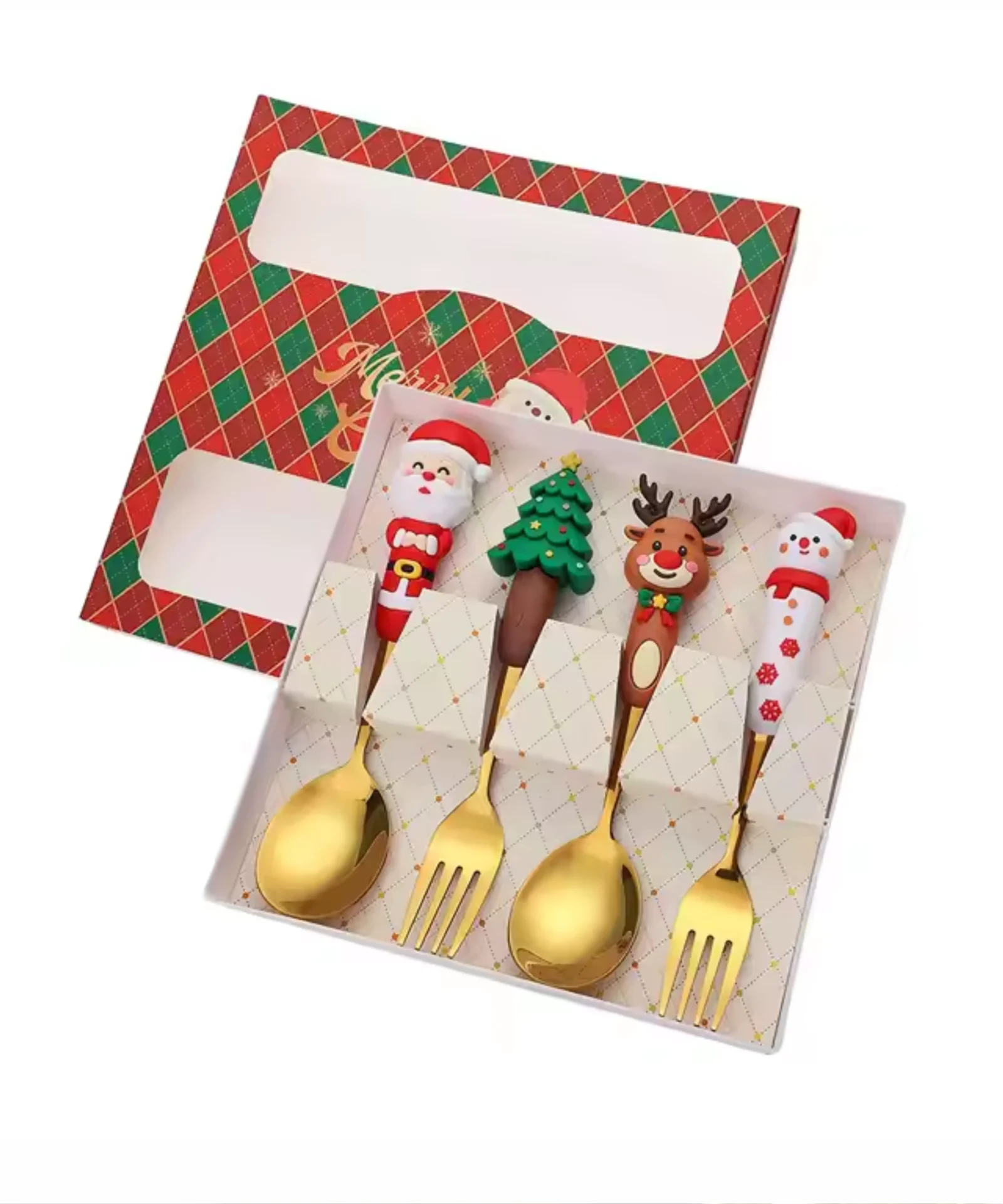 Lustrous Christmas 4pcs Spoon And Fork gift box | Christmas themed cutlery set