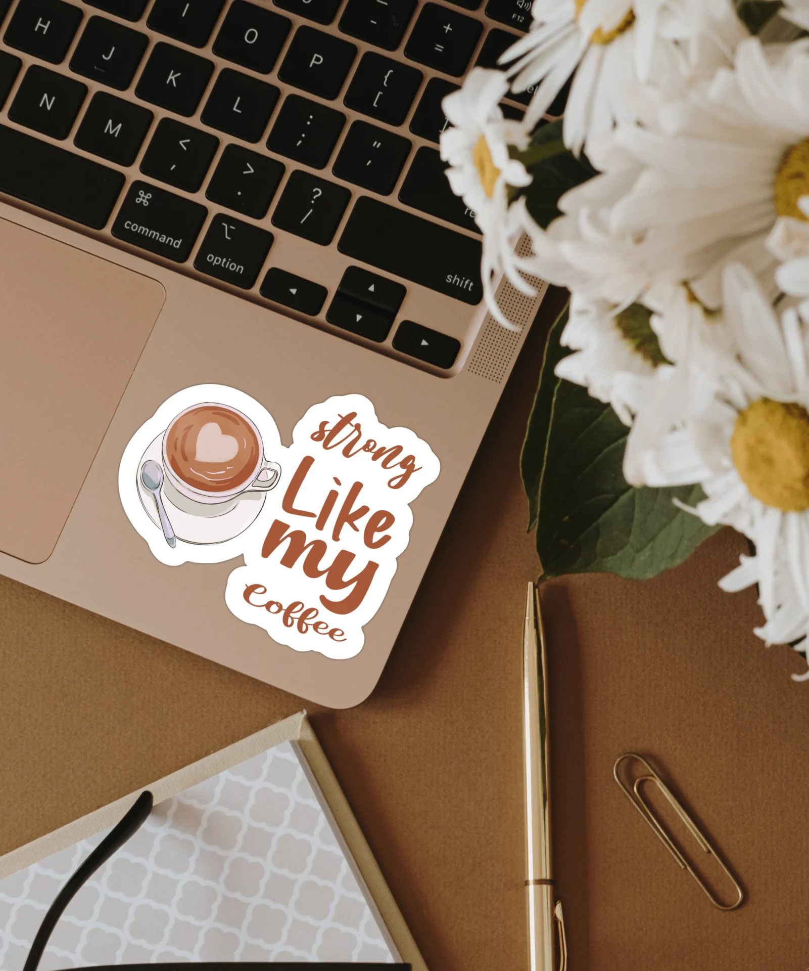 STRONG LIKE MY COFFEE | Cute Aesthetic Sticker, Motivational Sticker, Matt Laminated Vinyl Stickers, Mobile Sticker, Laptop Stickers