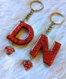 Our V-Day special Glitter Initial Keychains is curated with an unique and sparkly red OR pearl base with a small dangling heart. Handmade with your desired alphabet.